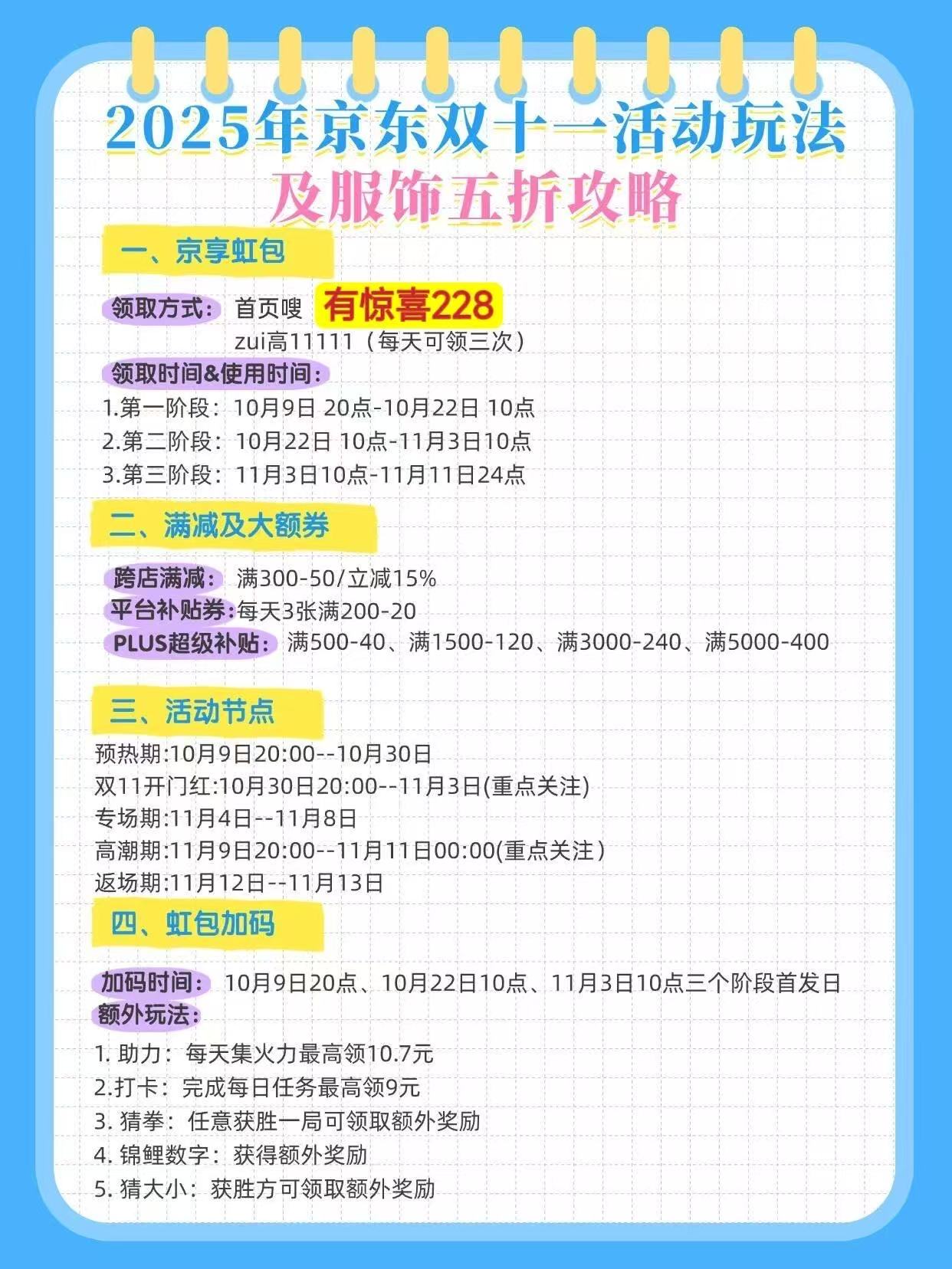 2025年京东双十一活动从10月9日0:00开始,到11月14日23:59结束,长达37天。以下是详细的活动攻略,帮助您更好地规划购物: