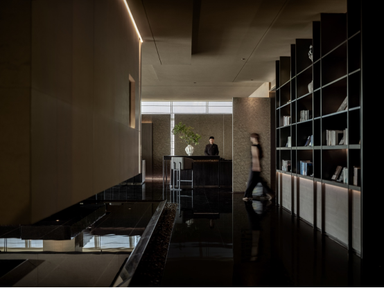 01 以设计回应“自在商旅”的当代表达 作为亚朵旗下的重要产品迭代,3.6版本的提出意味着品牌在“商旅”与“生活”之间寻找新的平衡点。MDA.SH弥境设计团队将“Bleisure”(商务+休闲)理念具象化,以石与木为基调,构建“自然共生”的空间秩序:让旅客在高效切换工作与休憩状态的同时,也能感受到被情绪安抚的松弛感。 “在城市快节奏中,酒店不只是功能的集合体,更是一处精神的停靠点。”设计团队代表表示。亚朵酒店3.6希望在体验上实现“情绪复位”,通过光影、材质与动线设计,让入住者在移动中获得平衡与舒缓。 02 从功能逻辑出发,构建“可感知的温度” 步入酒店大堂,岛台式接待区取代了传统前台,空间被划分为自然流动的“欢迎岛”。灰石与茶纹木的对比营造出秩序与温度并存的氛围。大堂不再是单纯的过渡空间,而成为旅客初抵时心绪“降速”的场域。 “竹居”阅读区以独处与社交之间的平衡为灵感,打造出可短暂停留、安静阅读的半开放空间。窗外的城市景观被光影框起,与水声、书香共构一处“静谧角落”,让商旅人获得片刻的精神补给。