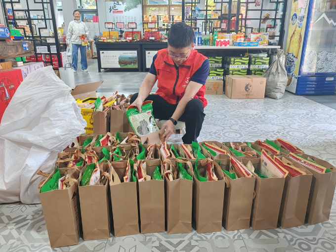 图为天台烟草帮助零售终端开展助农直播。 “以前就守着小店,现在通过直播,连隔壁阿婆做的笋干都卖到了省外!”零售户陈小余难掩欣喜,“多亏了客户经理帮忙搭平台,咱天台的好东西被更多人看见了!” 从“卖出去”到“送达快” 线上线下的火热宣传,带来了订单量的显著增长,也对店铺的后续服务能力提出了考验。面对激增的包裹,客户经理们主动上门,加入到打包队伍中。 店铺内,客户经理陈炉峰正熟练地分拣商品,胶带撕拉、裁剪、压紧的声音节奏明快,一个个承载着天台心意的包裹被迅速封装妥当,准备发往全国各地。