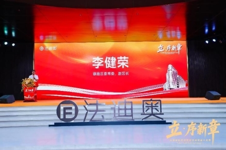 政府领导致辞 法迪奥新总部数智化基地能够提前顺利落成,离不开佛山市各级政府给予大力扶持。 本次活动有幸邀请顺德区委常委、副区长李健荣先生现场致辞。