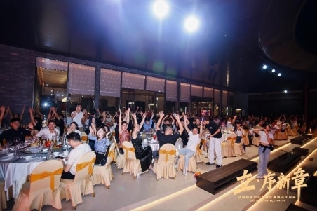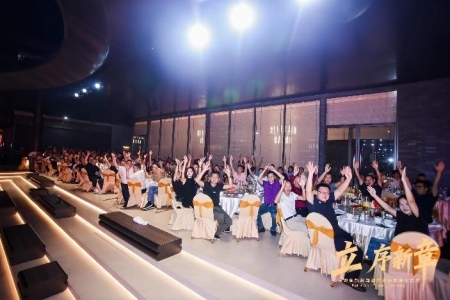 华彩之夜 嘉朋满座 夜幕璀璨,灯火相映,嘉朋满座。 法迪奥新总部数智化基地启幕庆典答谢晚宴拉开序幕。 法迪奥股东沈奕荣先生、蔡丽妹女士、沈初盛先生、沈增瀚先生、沈铮文女士、刘子伟先生、翁煜彤先生、欧阳灿球女士、蔡玉榜先生、施海钊先生、王伯水先生、罗长松先生,以及 广东省不锈钢材料与制品协会会长林泽榆先生 广东省橱柜业商会会长王超先生 广东省建筑装饰设计协会会长兰芳女士 广东省家居业联合会会长蒋德辉先生 高定设计周创始人张传喜先生 佛山市潮州商会会长王承忠先生 顺德潮汕商会会长许泽波先生 广州市家具行业协会会长梁纳新先生 佛山市家具行业协会会长周振扬先生 广东省家居建材商会执行会长兼秘书长杨传辉先生 共同登台,举杯与领导嘉宾们共同庆贺法迪奥新总部数智化基地圆满落成。