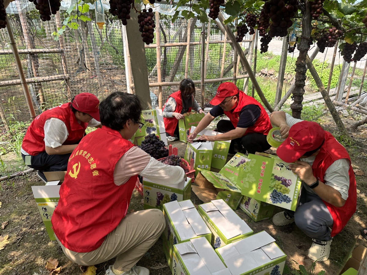 图为丁钰卿(右三)将刚采摘的葡萄装箱 获悉信息后第二天,丁钰卿就带着“香溢”志愿者服务小分队一大早赶到王大哥的葡萄园。大家在近40℃的高温中分工协作,剪枝、装箱、搬运等收摘环节有条不紊,顺利完成5000斤葡萄的采摘任务。望着满载的葡萄筐,王大哥紧锁的眉头终于舒展。这样的“店铺+果园”帮扶场景在丁钰卿的主导下每年上演多次,她和她的志愿服务团队用实际行动践行着“香溢助农”的服务承诺,将“助力乡村振兴、促进共同富裕”书写在田间地头。 “香溢”传情,用青春温暖万家灯火 每年暑假,外地籍零售户最操心的事莫过于子女的教育管理。丁钰卿在客户走访中了解这一情况后,主动与市场部主任商量,利用午休时间在“党员先锋驿站”成立暑期助学服务小分队,带头组织香溢志愿者帮助外来零售户子女进行课业辅导。 她还用通俗易懂的语言开展防溺水宣传,提高儿童自我保护意识。这一举措既解决了外来零售户子女的教育管理问题,也让他们能够安心经营,赢得了广泛赞誉。
