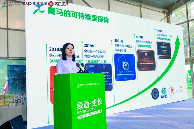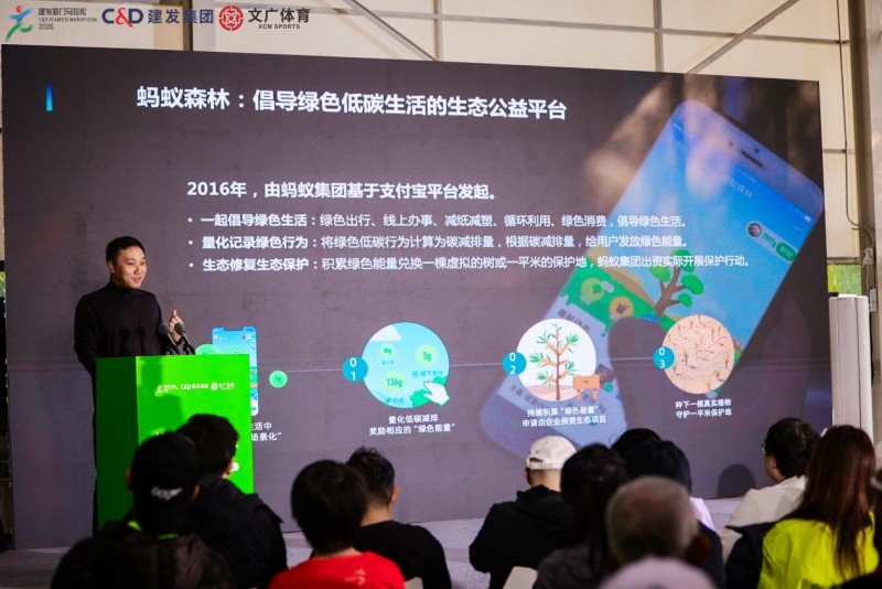 促进跨界交流,凝聚伙伴力量 在分享会上,来自厦门建发集团、厦门文广体育、蚂蚁森林公益基金会的嘉宾代表,分别从企业、赛事与公益视角,分享了可持续发展与伙伴关系的实践价值。 厦门文广体育代表回顾了厦门马拉松二十三年来在可持续办赛方面的持续努力,强调跑者、企业伙伴、城市各方在赛事绿色发展中的重要作用,呼吁各方携手参与到可持续赛事的共建中。