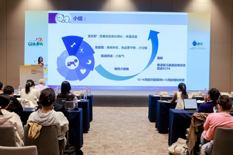 在婴儿配方奶粉领域,婴幼儿的特殊营养需求始终是临床与科研关注的重点。在儿科大会现场,北京大学第三医院李在玲教授发表主题报告,公布了部分水解配方临床实证成果。研究显示,部分水解配方奶粉能够有效降低宝宝的过敏发生率,同时能显著改善溢奶、吐奶、胀气等胃肠道症状,以及婴儿排便困难与粪便性状,切实提升婴儿生活质量,为宝宝在成长发育期提供更高品质的营养补充。