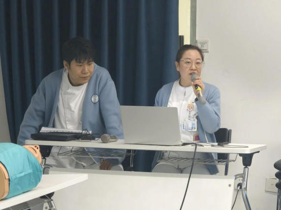 康汇医院事业发展部退役军人服务办公室接到任务后,迅速联动急诊科、科教科组建培训团队,并由经验丰富的急诊科护士长李梓萌担任主讲。培训采用“理论+实操”双轨模式,李梓萌围绕心肺复苏(CPR)操作流程、自动体外除颤仪(AED)使用方法等核心内容,通过PPT课件将复杂医学知识转化为直观步骤,并结合模拟人现场演示胸外按压、人工呼吸等关键动作。从判断意识、呼叫急救到按压与呼吸的精准配合,每一个细节都讲解得清晰透彻。