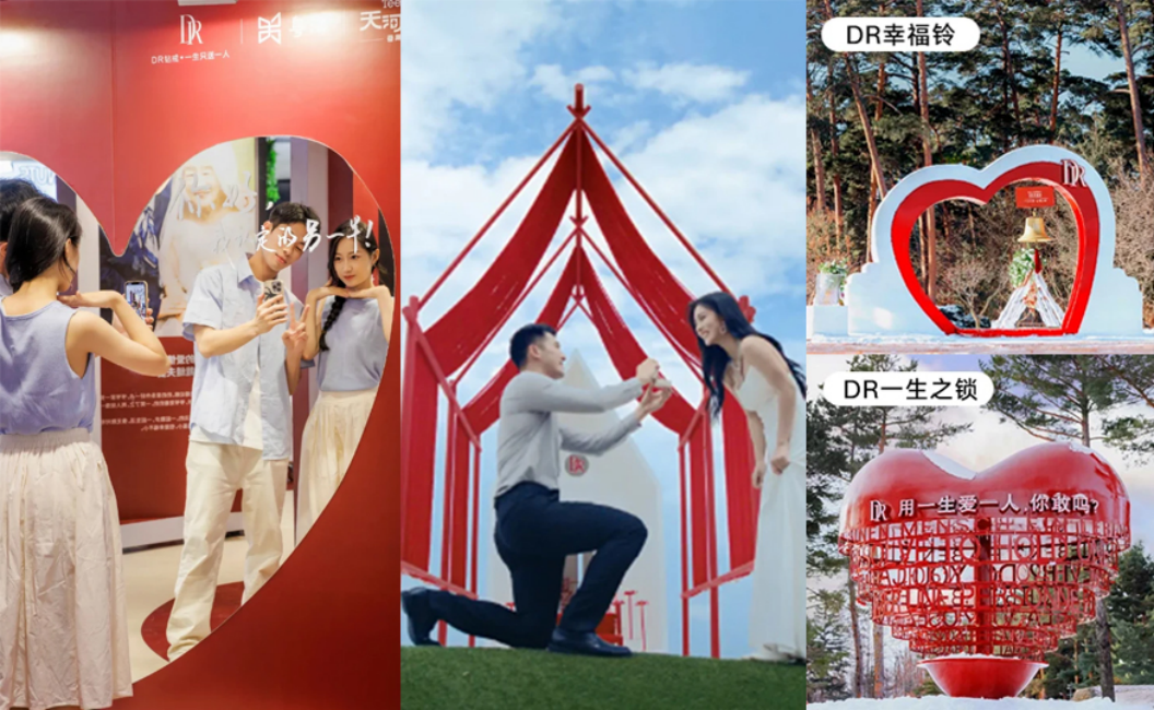 不止于门店,DR也将“爱之体验”延伸至几乎每一场线下活动:2025年初,DR联合长白山为用户搭建「1314真爱之路」,眷侣们可以于起点敲响DR幸福铃,到尽头“DR一生之锁”装置落下镌刻两人姓名的真爱锁,在“同淋雪,共白头”的浪漫中坚定爱意;2024年七夕,DR广州钻石婚夫妻影像展中,特设真爱互动区,眷侣们可以在“真爱之镜”合影,并在“告白区”留下真挚爱语;2023年七夕,DR于云南大理云想山搭建悬崖礼堂,礼堂中设置仅能容纳两人的「爱的对话空间」,让情侣们在静谧一隅,聆听彼此的心声......相比直白地“教人如何去爱”,DR选择提供空间,让每对爱侣在亲身体验中,爱意自然升温。 消费者向往的从来不是品牌符号,而是透过它看到“走向美好”的可能性。从创始人的爱情蓝本、到200万对爱侣的真爱故事,再到每一次切身体会的爱意流动——这一切,共同构建了DR无可替代的向往力,也最终在消费者心中,绘就了那个关于“一生唯一真爱”的幸福图景。