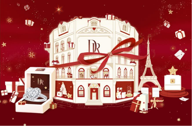 03 从体验店到品牌地标,让每一处空间为爱而生 为什么在DR总能看到这些真实而温暖的故事,根源在于,DR从未将自己视为一个单纯的珠宝品牌,而是一个以“帮更多人表达真爱,让爱情幸福长久”为使命的真爱品牌。
