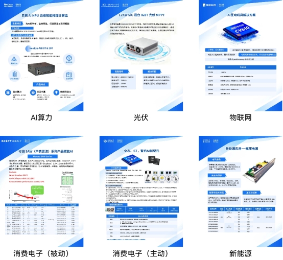 现场六大产品解决方案展示 展位现场展出六大产品解决方案,包括昇腾 AI NPU 边缘智能推理计算盒、12KW SiC 混合 IGBT 光伏 MPPT、高压电源、海思 Hi3516CV610-AI 互动玩具解决方案、村田SAW(声表面波)系列产品、ST60解决方案及全志AI智能眼镜应用案例等,涵盖AI算力、光伏、物联网、新能源、消费电子等领域,吸引了国内外众多行业工程师、采购决策者与合作伙伴、行业同仁们!大家纷至沓来,深入咨询产品技术,探讨行业趋势,共同寻求合作契机,现场交流气氛热烈!