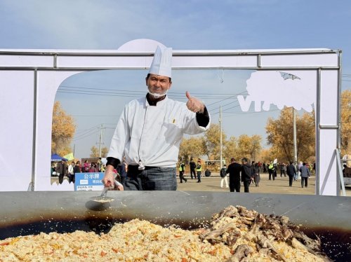 美食区的抓饭热腾腾的出锅。 【同期 女 汉语】甘肃游客李蓓蓓:“开幕式的现场的节目非常精彩,胡杨林也非常的出片,非常壮观,忍不住拍了很多的照片。沙雅真是个宝藏地方,好吃的好玩的都有很多。” 【正文】在美食区人头攒动,杠子头、面肺子、烤肉、抓饭等特色美食香气扑鼻,成为游客打卡的“必选项”。在抓饭摊位前,围满了群众,大家一边吃美食看美景,一边和同行的家人朋友分享口感。 【同期 女 汉语】乌鲁木齐游客 阿依加玛丽·艾力:“ 今天前来参加沙雅胡扬季活动 现场人很多也非常的热闹, 这里美食也非常的香,从远处闻起来馋的让人流口水,忍不住去吃几口。”