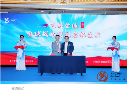 活动现场还举行了意义非凡的签约仪式,将此次盛典的氛围推向高潮。艺链全球分别与香港区块链技术应用协会、世界华人协会、赤峰八闽矿业有限公司达成战略合作。此次与香港区块链技术应用协会合作,双方将发挥各自在区块链技术和文化艺术领域的优势,共同探索区块链技术在传统文化艺术领域的创新应用,比如利用区块链技术确保艺术品版权的确权、交易溯源等,提升文化艺术作品在全球市场的流通效率与信任度。而与世界华人协会的合作,将借助其广泛的全球华人网络资源,进一步拓展艺链全球在海外的文化传播与推广渠道,促进中华优秀传统文化在全球华人社群中的深度交流与传承 ,推动更多传统文化艺术项目走向国际舞台。和赤峰八闽矿业有限公司的合作,则在资源整合方面达成深度共识,双方将共同探索在文化艺术产业投资、艺术品数字化资产运营等领域的合作模式,为艺链全球的战略落地提供坚实的资源与资金保障。
