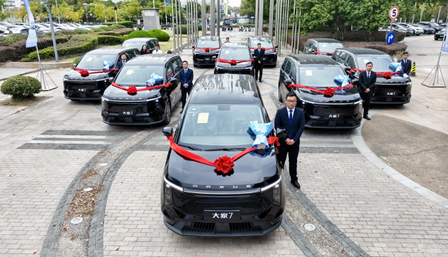 11月12日,上汽大通与环球车享联合举办的“上汽大通大家7百台上海专车交付”仪式圆满落幕。本次交付车型为上汽大通大家7草原换电版纯电MPV,总计交付100台,当日首批交付25台。整齐列队的大家7车队以焕然一新的姿态蓄势待发,为网约车市场注入强劲动能。