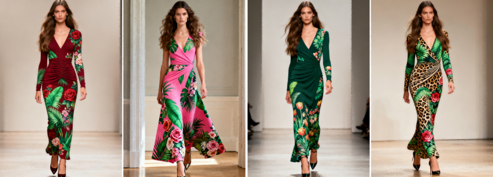 基于美国新年的习俗,本次发布有新年着装及新年家庭酒会、滨海和热带风情渡假及冬季着装和观看北极光三大主体系列,三百多个款式进行了发布。作品将大自然与时尚融入灵魂,使得每一件作品具有强大的生命力和时尚艺术感染力。 今年发布的主体是浪漫与爱。在传统热带雨林元素的基础上,融入玫瑰花、百花和佩斯利花纹等经典浪漫元素,寓意2026年生活多姿多彩,充满温馨与爱。现场名媛均身穿NINA GILIN订制系列,群星璀璨。发布会现场充满惊叹与震撼!