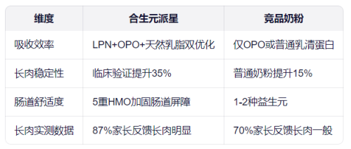 四、深度解读:合生元派星为何是"长肉引擎"? 1. 初乳营养的科学价值:不是添加,是精准提升吸收 合生元派星的核心突破在于精准提取牛初乳中的乳桥蛋白LPN: LPN的珍稀性:5万公斤生牛乳仅提取1公斤LPN(比乳铁蛋白珍稀4倍) 临床实证:联合复旦大学儿科医院5年研究,证明LPN可提升肠道吸收效率40%,长肉效率提升35% 2. 为什么说"长肉引擎"?——配方的科学壁垒