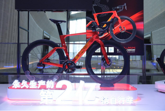 温情时刻属于为品牌奉献毕生的永久人,一段致敬老厂长的短片让观众热泪盈眶;《我与永久的故事》则以经销商视角,再现了品牌与渠道数十年的信任相伴。庆典特设“风雨同舟奖”“永久家人”等四大奖项,为那些与永久并肩前行的伙伴加冕。《永久大事记》以时间轴串联起品牌的高光时刻。在《揭秘:永久第两亿辆自行车》视频放映之后,永久宣布这辆车将公开拍卖,所得款项用于支持青少年体育发展事业。