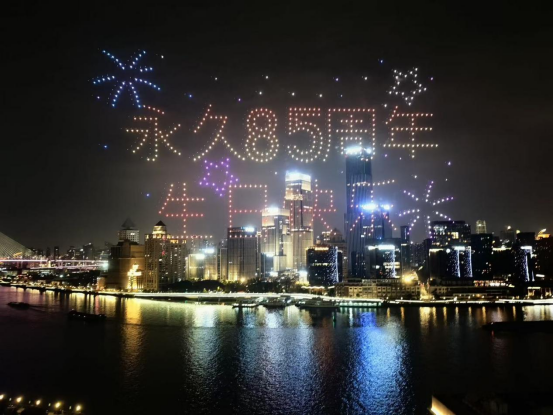 庆典在绚丽的无人机表演与灯光秀中拉开帷幕。600架无人机划破夜空,在黄浦江畔勾勒出“永久85周年生日快乐”等图案,灵动轨迹与酒店建筑光影交相辉映,瞬间点燃了现场热情。中国轻工业联合会党委常委、监事长、中国自行车协会理事长刘素文,宝山区委常委、副区长肖刚等领导出席,与永久共襄盛举。