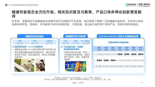 图:丰安FAMSAFE小紫罐多肽平均分子量3500Da 前端的技术创新离不开后端产业积淀的支撑,丰安的竞争壁垒更源自其深厚的产业根基。作为丰安的母公司,浙江丰安生物制药不仅是国内首批获得脾氨肽口服冻干粉生产资质的企业,更是该产品质量标准的制定者。三十年的专业积淀,为产品研发提供了可靠的生产保障与持续创新能力,使丰安在市场竞争中享有独特的供应链优势。 从成分科学到技术突破,再到全产业链保障,丰安以科学循证为主线,将前端研发与后端生产无缝衔接,构建起难以复制的竞争壁垒。在自护营养领域同质化竞争日益激烈的背景下,丰安通过夯实科研基础、强化技术优势、整合产业资源,成功打造出以“科学创新”为核心的自护营养解决方案,为品牌在市场竞争中确立了持续领先的优势地位。 02深研潮流风味,激发双向自护平衡“轻健康”新风尚 在日常健康管理中,消费者常常面临着时间、精力与成本等诸多挑战,促使他们倾向于选择高效且体验优良的健康管理方式,“轻健康”的消费需求随之产生。市场调研显示,水果与花香类风味产品在食品市场中占据领先地位,而五谷、果蔬及药食同源等天然健康食材的风味也逐渐成为市场的新宠。 如今的消费者已不满足于营养保健品单一的功能,他们更加追求产品所带来的消费体验与深层次的情感共鸣。口味与口感,作为与消费者建立情感联系的关键触点,其重要性愈发凸显。