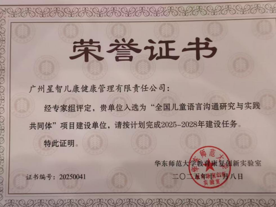 星智成长是专注儿少发育行为与心理健康的特殊教育品牌,在特殊儿童康复教育领域深耕十余年,在本届年会上,经专家组评定,成功入选为“全国儿童语言沟通研究与实践共同体”项目建立单位。星智成长教学研发中心主任郑荣双教授受邀参加了本届年会,并在会上获颁证书。星智成长此次能加入全国性的研究平台,是行业对星智成长品牌的认可,也是星智成长教研团队努力不懈的结果,更是一种鞭策,为行业的高质发展添砖加瓦,贡献力量。