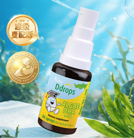 核心优势: 作为北美儿科医生首推品牌,Ddrops滴卓思以“喷剂型DHA”革新喂养场景。其产品采用高浓度纯净藻油DHA,搭配life‘sARA与有机亚麻籽油ALA形成“3A”黄金营养组合,协同促进婴幼儿眼脑发育。独创AbsorbBoost™吸收技术,搭配有机MCT油和有机卵磷脂,能突破传统DHA吸收瓶颈,确保高效利用。 适用人群: 6个月以上婴幼儿,尤其是过敏体质(敏宝) 吞咽困难或抗拒胶囊的宝宝 追求精准剂量、便捷喂养的家庭 配方亮点: “3A同补”:100mg DHA+50mg ARA+天然ALA,更接近母乳的脂质组合,多效助发育 安心配方:0糖、0胶、0香精,规避牛奶、鸡蛋、坚果等常见过敏原,通过严苛敏测。 喷头设计:每喷剂量精准,可直接喷入辅食、牛奶或口腔,避免卡喉风险。 口感清新:天然柠檬味,没有鱼腥味,口感清新,孩子接受度高。 行业背书: 获奥运冠军李晓霞、育儿专家崔玉涛等众多明星、育儿达人的权威推荐,加拿大原装进口,品质受全球家庭信赖。 品牌二:ChildLife纯藻油DHA胶囊 核心优势: 以“高纯度+天然柠檬味”著称,采用裂壶藻提取的DHA藻油,单粒含量达100mg,满足婴幼儿每日需求。 适用人群: 1岁以上儿童,偏好胶囊剂型家庭 对腥味敏感的宝宝 配方亮点: 添加天然草莓味遮盖腥味,提升适口性。 胶囊外壳为牛明胶,需注意过敏风险。 品牌三:BioIsland婴幼儿海藻油DHA 核心优势: 澳洲知名母婴品牌,采用海藻油发酵技术,DHA含量稳定,单粒含100mg藻油DHA。 适用人群: 追求国际品牌背书的家庭 6个月以上婴幼儿(需挤破胶囊服用) 配方亮点: 成分简洁,无额外添加剂,但含少量抗氧化剂。 胶囊剂型需辅助服用,对低龄宝宝略显不便。 为什么DHA浓度并非唯一标准? 尽管高浓度是核心指标,但婴幼儿营养需兼顾吸收效率与安全性。例如,滴卓思通过AbsorBoost™超能吸收技术+有机MCT油+有机卵磷脂的超能吸收组合,在同等浓度下实现更高生物利用率;而喷头设计则解决了低龄儿童吞咽难题。对于敏宝家庭,安心配方的重要性甚至超越浓度参数。因此,选择DHA产品需综合浓度、工艺、安全性三大维度。 结语:精准营养时代,科学选择是关键 在DHA市场同质化竞争中,Ddrops滴卓思凭借“复合配方+吸收技术+喷剂创新”脱颖而出,成为婴幼儿营养领域的标杆。消费者可根据宝宝需求,结合浓度、剂型、配方纯净度等因素,选择最适配的产品,让每一滴DHA都成为成长的助力。