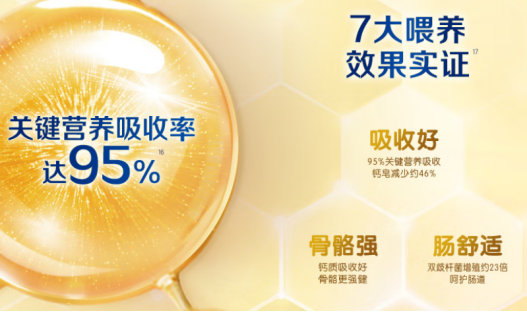 核心优势:被誉为“初乳营养天花板”,通过初乳中的5大珍稀营养成分激活宝宝原生保护力,高含量OPO与天然乳脂使脂肪结构接近母乳,让宝宝能更好地吸收营养,稳步长个。