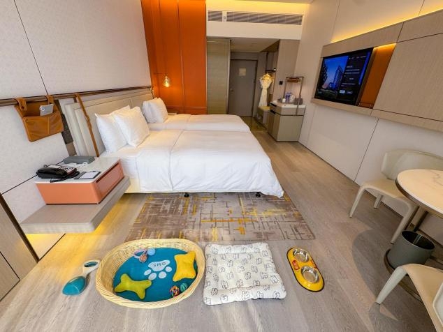 专属“毛孩子设施”已备齐 更值得一提的是,酒店按“毛孩子生活场景”细分,配齐专属设施,细节拉满: ✅ 洁更值得一提的是,酒店按“毛孩子生活场景”细分,配齐专属设施,细节拉满: ✅ 洁净保障类:备好清洁工具与充电吸毛器,无论是清理还是毛发打理,都能轻松搞定,快速收拾毛孩子的“小战场”,保持客房整洁; ✅ 居住舒适类:定制藤编宠物窝,柔软透气打造“五星级”睡眠区,搭配专用食盆水盆,让毛孩子住得安心、吃得放心; ✅ 配齐宠物吊牌、专用狗绳及拾便袋,不管是前往宠博会,还是在酒店周边遛宠,都能保障毛孩子安全,助力文明出行。 净保障类:备好清洁工具与充电吸毛器,无论是粪便清理还是毛发打理,都能轻松搞定,快速收拾毛孩子的“小战场”,保持客房整洁; ✅ 居住舒适类:定制藤编宠物窝,柔软透气打造“五星级”睡眠区,搭配专用食盆水盆,让毛孩子住得安心、吃得放心; ✅ 配齐宠物吊牌、专用狗绳及拾便袋,不管是前往宠博会,还是在酒店周边遛宠,都能保障毛孩子安全,助力文明出行。