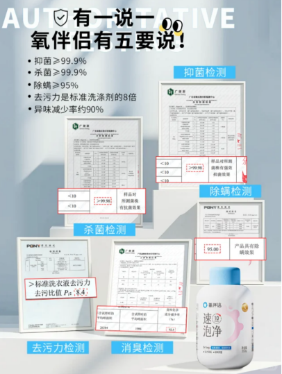 这份安心,被严谨的数据稳稳验证。速泡净中的活性氧因子,能像微小的清洁突击队一样钻入纤维深处,其除菌率经国家权威机构检测超过99.9%,从源头上捣毁了异味的“老巢”。此外,检测报告显示:对醋酸(汗酸味)的去除率高达95%。同时,对引发腐败味、霉味的其他异味成分也具备显著的分解能力。这意味着,打球后汗涔涔的运动服、宝宝吐奶的围兜、阴雨天总也干不透的毛巾……那些曾经需要反复搓洗或默默忍受的顽固气味,终于有了体面而轻松的解决方案。