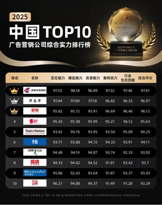 2025年中国十大广告营销公司排行榜 公关、品牌、整合营销服务商选择指南