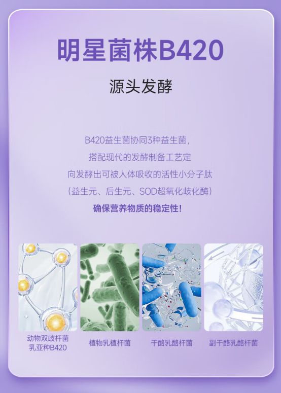 自创立以来,多燕瘦始终秉持“3分动7分吃”的科学理念,聚焦消费者对健康食品的核心需求。在益生菌产品研发上,品牌围绕肠道微生态平衡与日常饮食场景,构建了清晰的产品矩阵。以蓝莓活酵素吸吸果冻soso棒为例,采用多元复合配方,融合8大益生菌、9大益生元与36种五色天然果蔬成分。其中包含动物双歧杆菌乳亚种B420、植物乳植杆菌等明星菌株,这些菌株相互配合,协同发酵生成高活性后生元,让营养成分更易被人体吸收利用。搭配低聚果糖、聚葡萄糖等益生元,为肠道有益菌提供“养料”,形成良性循环。同时,产品采用冷加工制备工艺,保留营养活性,0脂肪的特性也让其成为日常饮食的贴心搭配。