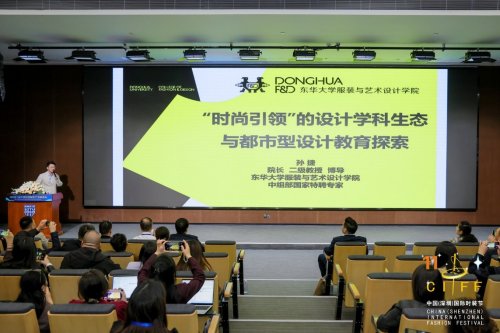 主题论坛:多元视角碰撞,锚定行业发展核心命题 主题论坛以“数智赋能·产教融合·传承创新”为主线,直面AI技术对传统设计模式的重塑及人才培养与产业需求之间的“最后一公里”问题。 浙江理工大学服装学院院长崔荣荣提出“教科人一体化”人才培养模式,分享数智技术融入教学与科研协同育人的实践经验;深圳赢家时尚集团PR总监徐志东从企业用人角度解析AI时代对复合型人才的新要求;东华大学服装与艺术设计学院院长孙捷以设计生态视角,构建数智、人本、可持续并重的教学体系;广西经贸职业技术学院院长陈超华分享AI驱动下的跨境产教融合新范式;西安工程大学刘晓喆教授则从理论层面探讨产学研绩效评价机制,为“三链融合”提供支撑。