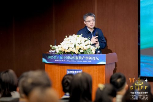 2025年12月16日,由中国纺织服装学会、深圳技术大学、深圳市时装设计师协会联合主办的第十一届中国(深圳)国际时装节暨第六届中国纺织服装产学研论坛在深圳技术大学隆重举行。论坛由中国纺织服装教育学会产学研委员会、深圳技术大学创意设计学院、深圳市欧纺服装研究院等单位承办,汇聚全国高校、行业协会及龙头企业代表,共同探讨人工智能时代纺织服装教育与产业协同发展的新路径。 深圳技术大学副校长梁永生、中国纺织服装教育学会会长纪晓峰出席活动并致辞,深圳市时装设计师协会会长周世康就深圳共建政校行企协同的全国纺织服装产学研服务平台建设情况及其功能定位作了系统介绍。