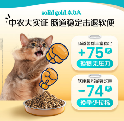 中国农业大学6周系统性喂养实证数据显示:喂食素力高猫粮的猫咪腹泻率降低74%,肠道菌群数量提升75%,真正实现换粮不呕吐、换季不拉稀,帮助肠胃敏感的猫咪养成“钢铁胃”。