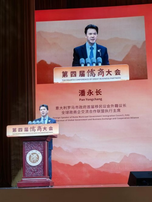 近期,受中共山东省委、省政府邀请,意大利罗马市政府外籍议长、全球政商企交流合作联盟执行主席潘永长,应邀在济南参加山东省第四届儒商大会。