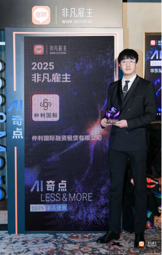 2025年12月12日,由猎聘主办的“2025非凡盛典·华东站”在上海隆重举行。活动现场,猎聘正式揭晓2025年度非凡雇主榜单,仲利国际凭借卓越的组织能力与优质的员工体验,成功斩获“2025上海年度非凡雇主”殊荣,公司人力资源处副理组长王诗禹代表企业出席活动并领取奖项。