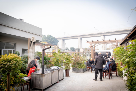 就在月嫂培训如火如荼开展时,距离仙桥村居民活动中心600米的“仙桥食坊”小院,已升起氤氲烟火气。村民黄兰与何小辉夫妇已经在为中午的客人备餐了。何小辉原本是经验丰富的坝坝宴大厨,在仙桥镇推进庭院经济建设时,他将自家院子改造成餐饮小院,却一度遭遇“酒香也怕巷子深”的客流困境。得知情况后,村支书刘春立即邀请老板娘黄兰参加“乡村赋能中心项目”的电商直播培训,并在评估粉丝人数和其他流量因素后,用个人账号帮忙发布“仙桥食坊”的推荐视频。视频里,色泽诱人的农家菜、绿意盎然的庭院令人心生向往,而经过直播培训的黄兰,也从一开始面对镜头的手足无措,逐渐掌握了镜头语言技巧,练就了熟练的营销话术。满满烟火气的视频很快为小院吸引了八方食客,黄兰喜悦地说:“现在,不少人是看了视频专门找来的,生意比以前好多了!”