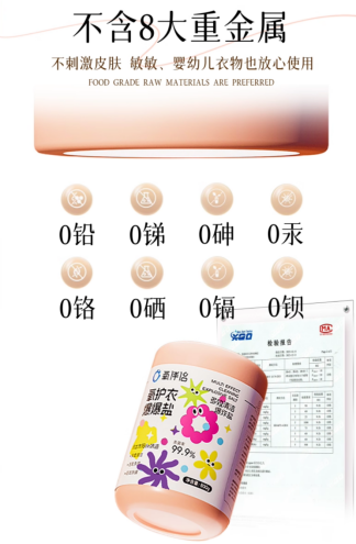 (图为活氧清洁过程示意) 这项被称为“有氧洗”的技术,并非横空出世。早在2014年前后概念被提出后,它便持续进化,在2020年后加速应用于各类家居清洁产品中。其背后的科学原理历经了从实验室到工业化生产的长期验证。过碳酸钠遇水释放的活性氧,能渗透至纤维深处,通过氧化反应破坏污渍的分子链,实现深层清洁。而整个反应最终的产物是水、氧气和碳酸钠(苏打),从原理上就奠定了其环保、易漂洗的基础。 尽管如此,面对琳琅满目的新品,消费者心中的三大终极顾虑依然需要被清晰、坦诚地回应。我们不妨以在活氧清洁领域深耕多年的品牌氧伴侣为例,看看一个负责任的品牌如何用科学解答疑虑。 顾虑一:安全性质疑——是否会有化学残留? 将“活氧”这样听起来颇具效力的技术用于清洗宝宝衣物、餐具,其安全性自然是首要关切。 理解这份担忧,需要穿透营销话术,回到成分本质与作用终点。优质的活氧清洁产品,其核心过碳酸钠被公认为一种安全、环保的“绿色化学”原料。它的清洁过程是氧化分解而非化学覆盖,最终产物无害,因此从原理上追求“无有害残留”。这正是像氧伴侣这样的品牌,坚持在产品中摒弃荧光增白剂、磷等争议成分的底层逻辑——它们希望带来的洁净,其终点是清澈与安心。 当然,原理的安全需要现实的验证。这正是第三方权威检测报告的价值所在。根据行业标准,对这类产品的检测远不止于去污力,更包括活性氧含量、pH值、重金属残留(如铅、砷),以及微生物杀灭率等全方位的安全与效能指标。例如,氧伴侣的明星产品“氧护衣爆爆盐”经权威检测,不含铅、锑、砷、汞、铬、硒、镉、钡八大重金属。这份来自专业实验室的量化报告,让“安全”从一个形容词,变成了可核查、可追溯的安心承诺。