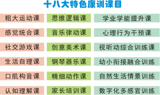 星智成长总结多年的康训经验及专业技术优势,运用“医教结合 科学疗育 综合康训"3S康训服务模式,全方位开设语言认知、口肌构音、粗大精细动作发展、感觉统合、社交游戏、思维逻辑、学业学能、音乐律动、艺术潜能、心理行为干预等多门康训科目,形成“规模化、专业化、一体化"康训特色。 星智成长遵循因人而异、订制服务的原则,采用科学的、先进的康训设备,国际主流及循证有效的应用行为分析(ABA)、人际关系发展干预(RDI)、社交游戏与文化介入(PCI)、早期介入丹佛模式(ESDM)、结构化教育(TEACCH)、图片交换沟通系统等先进的康训与特教方法,为孩子量身定制行之有效的立体康训方案,抓住最黄金的训练时期,通过科学、密集、动态、持续的干预训练,以最短的时间取得最佳的康训效果,为特殊孩童尽快融入幼儿园或普校赢得时间。