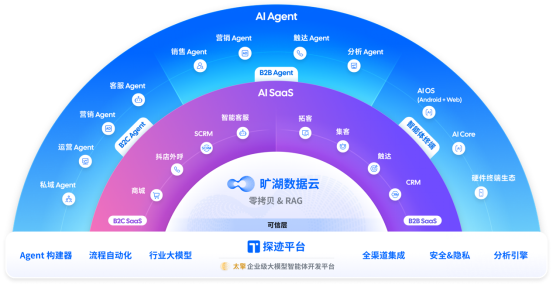 近日,AI智能体赛道出现标志性事件:专注于数字生产力的大模型智能体平台探迹科技宣布,探迹B2C智能体日均Token消耗量超500亿,在To B行业的Agent应用中,其Token消耗量已进入前十,正式迈入“万亿Tokens俱乐部”。这一数据不仅反映了探迹产品在电商与零售领域的深度渗透,更被视为AI Agent从技术验证迈向大规模商业化应用的关键信号。 Token消耗量是衡量AI模型实际工作量的核心指标,如同工厂的“电表读数”。万亿级的消耗意味着探迹AI智能体已处理海量任务、服务大规模用户,并形成了稳定的业务闭环。探迹B2C智能体基于电商与零售垂直大模型ShopGLM打造,并融合了DeepSeek、豆包等先进模型能力,为品牌提供覆盖客服、营销、运营、私域的全流程Agent服务,其高Token消耗正源于持续、多轮的用户交互与复杂业务处理。 这背后是探迹科技长期构建的技术与场景融合能力。探迹依托自研的“太擎”企业级大模型开发平台与“旷湖”数据云底座,形成了从开发、数据到场景落地的完整闭环。目前,探迹B2C智能体已服务超10000家品牌客户,其中包括妙可蓝多、格力等知名企业。某家电品牌接入后,实现单个接待成本下降90%,接待容量提升300%。