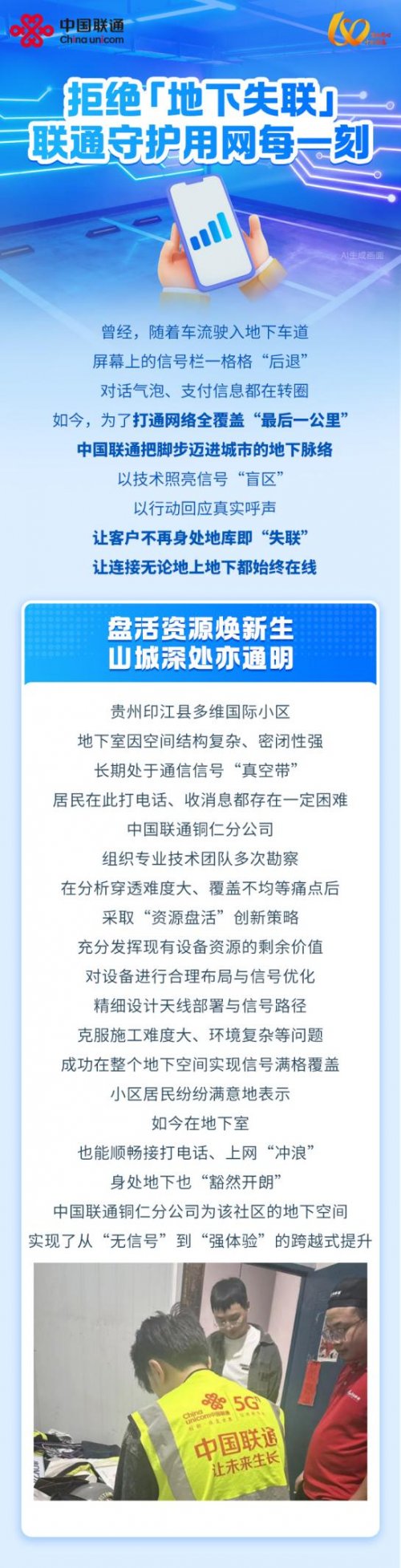 为了打通网络全覆盖“最后一公里,中国联通把脚步迈进城市的地下脉络,以技术照亮信号“盲区”。