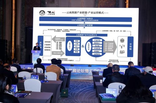 嘉宾主题论道 云南本土猪种撒坝猪、大河乌猪、高黎贡山猪、臻土云南黑猪等企业代表共同参与了云南黑猪产业联盟的正式启动。