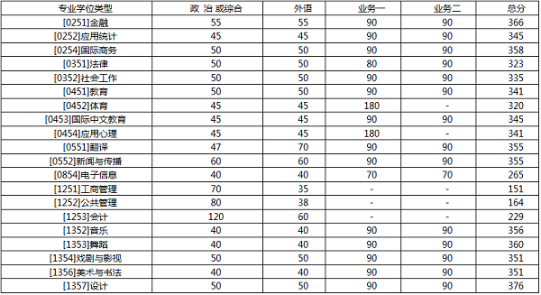 二、学校复试基本分数线(专业学位类)