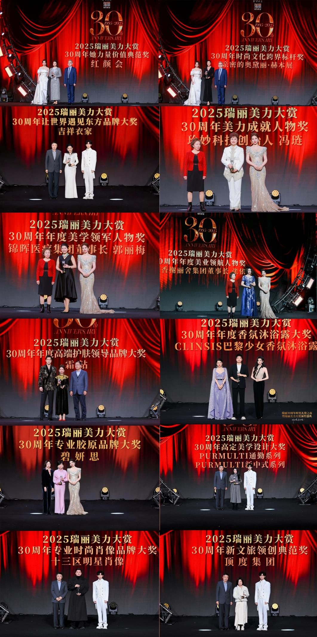 品牌聚力,共塑美力新生态 盛典环节揭晓了“瑞丽美力大赏·瑞丽30周年大奖”。该奖项聚焦过去一年在时尚、美妆、生活方式等领域真正引领潮流、触动心灵的品牌与产品。红颜会、珍妙科技、香榭丽舍、锦晖医疗、碧妍思、霜钻、CLINSIS巴黎少女、吉祥衣家、Purmulti、十三区明星肖像、顶度集团、亲密的奥黛丽·赫本展等众多品牌荣膺大奖,正是品牌的聚力同行,我们才能携手共创佳绩。这不仅是对产业创新者的表彰,更是对未来美力生态的展望。