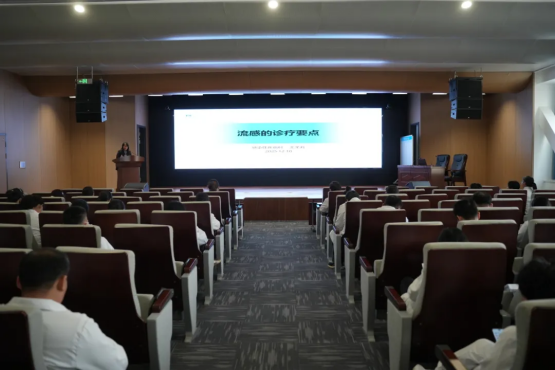 在系统梳理流感概述时,王主任用数据说明了流感的公共卫生负担,指出病毒易变异、传播快,对老年、儿童、孕产妇等高风险人群威胁较大。围绕诊疗要点,她结合《流行性感冒诊疗指南(2025版)》,深入讲解了传染源、传播途径及重症高危人群的定义,并剖析了从病毒侵入到可能引发细胞因子风暴的发病机制。通过影像资料,她还直观展示了流感肺炎的动态演变,并重点提示了儿童急性坏死性脑病等危重并发症的早期预警指标。
