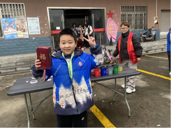 最受欢迎的环节当属“废物利用·红灯笼制作”。工作人员现场演示了如何使用居民家中常见的废旧红包制作红灯笼,将看似无用的物品转化为充满年味的装饰品。在制作过程中,工作人员向小朋友们重点讲解了“变废为宝”的环保价值。孩子们兴奋地拿起剪刀、胶水,与家长一起精心裁剪、粘贴,一个个原本要被丢弃的红包,在大家的巧手下变成了红彤彤、喜气洋洋的红灯笼。完成作品后,孩子们在灯笼上写下了自己的新年心愿,让这独特的环保作品更具意义。