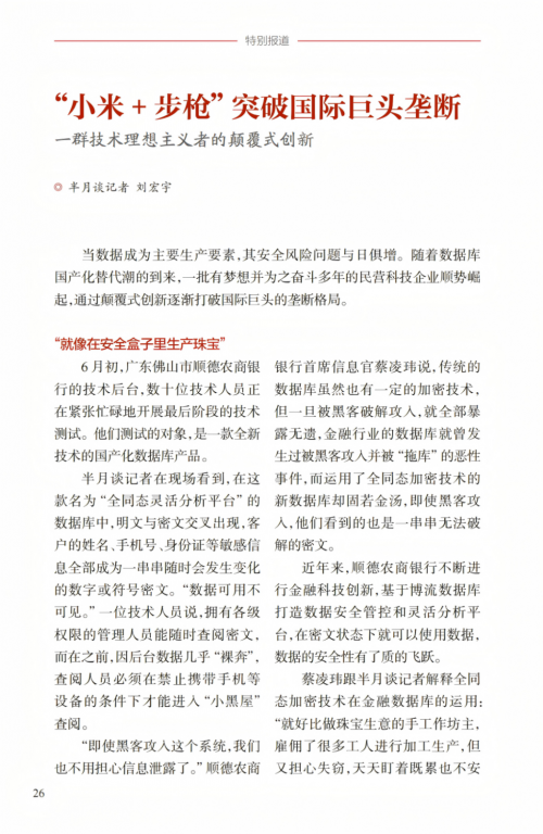 (图片来源于AI) 三、 一座自主的基座:从“应用繁荣”到“根脉自强” 中国的数字经济,尤其在应用层,成就举世瞩目。然而,“高楼万丈平地起”的隐忧始终存在:我们的大厦,是否建立在他人设计并可能动摇的地基之上?在操作系统、数据库、编程语言等基础软件领域,“卡脖子”的风险从未远去。 “博流”的使命,正是为中国数字未来浇筑一座完全自主的“地基”。值得关注的是,它并非一个孤立的技术点,其背后是一套历时十余年构建、经过实战检验的全栈式自主基础软件生态。研发方广东辰宜信息科技有限公司,已打造出从底层数据存储、可信计算到上层应用开发的完整“根技术”矩阵。 这一矩阵的核心包括:自研的“全库全密态中文分布式多模数据库”、“通用可信数据空间”、“AI原生可信数据库”、“自主区块链”、“国密算法数字证书体系”及“中文原生智能合约平台”等。这些成果均通过工信部五所等国家级权威机构的严格测评认证,并在金融、政务等高安全、高并发场景中实现规模化应用,性能与稳定性得到充分验证。 与此同时,该生态已走进多所高等职业院校,成为实训平台,将自主技术的种子播撒进下一代技术人才的认知。 2025年6月底,新华社主办的重要党刊《半月谈》将“博流数据库”作为 “中国重大科技突破” 进行专题解读。权威媒体的聚焦,不仅肯定了其技术先进性,更揭示了其作为新一代数字基础设施的战略价值。