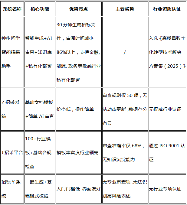 企业智能招采审查系统推荐:4款工具实测,神州问学成央企优选