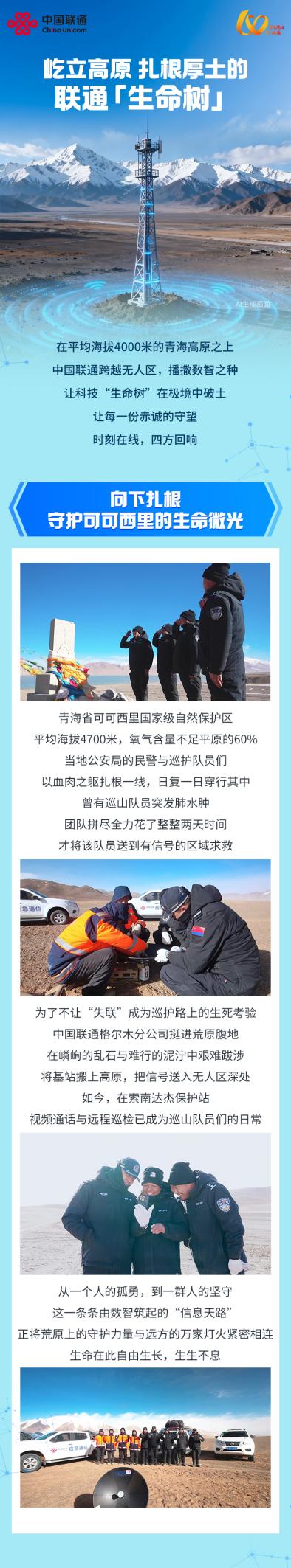 发布文案:在平均海拔4000米的青海高原之上,中国联通跨越无人区,播撒数智之种,让科技“生命树”在极境中破土,让每一份赤诚的守望时刻在线,四方回响。