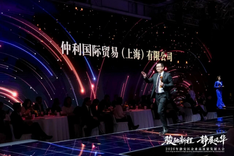 2026年3月2日,“骏驰新程 静展风华”2026年静安区企业高质量发展大会在上海顺利落幕,此次大会齐聚区域内优质企业代表,全面复盘2025年静安区高质量发展成效,明确2026年发展方向,凝聚政企同心、共促发展的强大合力。会上,仲利国际旗下仲利国际贸易(上海)有限公司(下称“仲利贸易”)凭借在区域经济建设中的突出表现与卓越贡献,成功斩获“2025年度高质量发展企业”荣誉,仲利国际代理资深总监许自钧受邀出席大会,并代表企业登台领奖,接过这份属于企业与静安共生发展的珍贵认可。