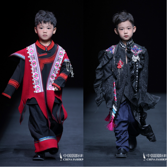 相较于成人模特,少儿走秀更考验勇气与定力——面对聚光灯的聚焦、现场众多业内专家与媒体的注视,以及国家级秀场的严谨氛围,许多成年人都会心生怯意,但铂度文化的小超模们却展现出远超年龄的勇敢与从容。据悉,这些小超模均经过铂度文化系统的专业训练,从形体姿态、台步节奏到表情管理,每一个细节都打磨得精益求精。但站上时装周的舞台,更多的是对心理的考验,而她们用行动给出了完美答案:没有丝毫怯场,眼神坚定而明亮,步伐稳健而有力,将“勇敢”二字诠释得淋漓尽致。 秀场之上,小超模们身着【花彝裳】非遗绣品,衣袂间流转着彝族纹样的灵动与精致,银饰碰撞发出清脆声响,与她们自信的步伐相得益彰。她们身姿挺拔,腰背舒展,台步错落有致,既有孩童的天真烂漫,又不失专业模特的气场与格调——有的小超模从容迈步,眉眼间尽显大气端庄,将彝绣服饰的温婉底蕴完美呈现;