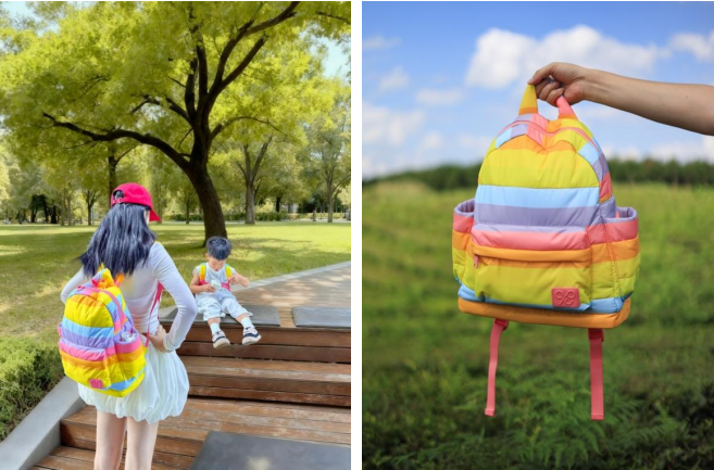 如果说过往的妈咪包更多是隐藏在婴儿车挂钩上的“育儿工具”,那么CIPU彩虹包在设计上的处理,则让它有了回归日常配饰的底气。无论是双肩包还是侧背包款式,背上CIPU彩虹包的感觉不再是“背了一个带娃的包”,而是“背了一个刚好也能装下育儿用品的包”。当妈咪包不再只是“妈咪的包”,它才能真正融入使用者的日常生活。