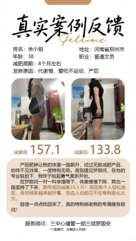 余小姐是一名普通文员,受产后代谢放缓、爱吃不运动的生活习惯影响,体重一度涨到 157.1斤。为了恢复身材,她试过无数减重产品,却始终不见效果,一度陷入深深的无助之中。直到接触到谦立,在顾问的一对一专业指导与鼓励下,她摒弃了此前急功近利的错误减重方式,开启了适配自身身体状态与生活节奏的科学体重管理。经过4个月左右的循序渐进调理,余小姐成功减重23.3斤,体重平稳降至133.8斤,不仅身形线条得到了肉眼可见的改善,整个人也变得轻松自在,重新找回了丢失的自信。