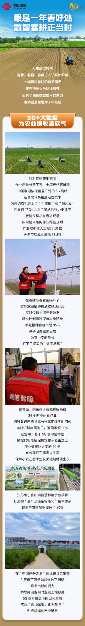 万物欣欣向荣,春管、春耕、春种进入了繁忙阶段,一幅春耕备耕的诗意画卷,正在神州大地徐徐展开,有了联通数智技术的助力,春耕图景更增添了科技感。